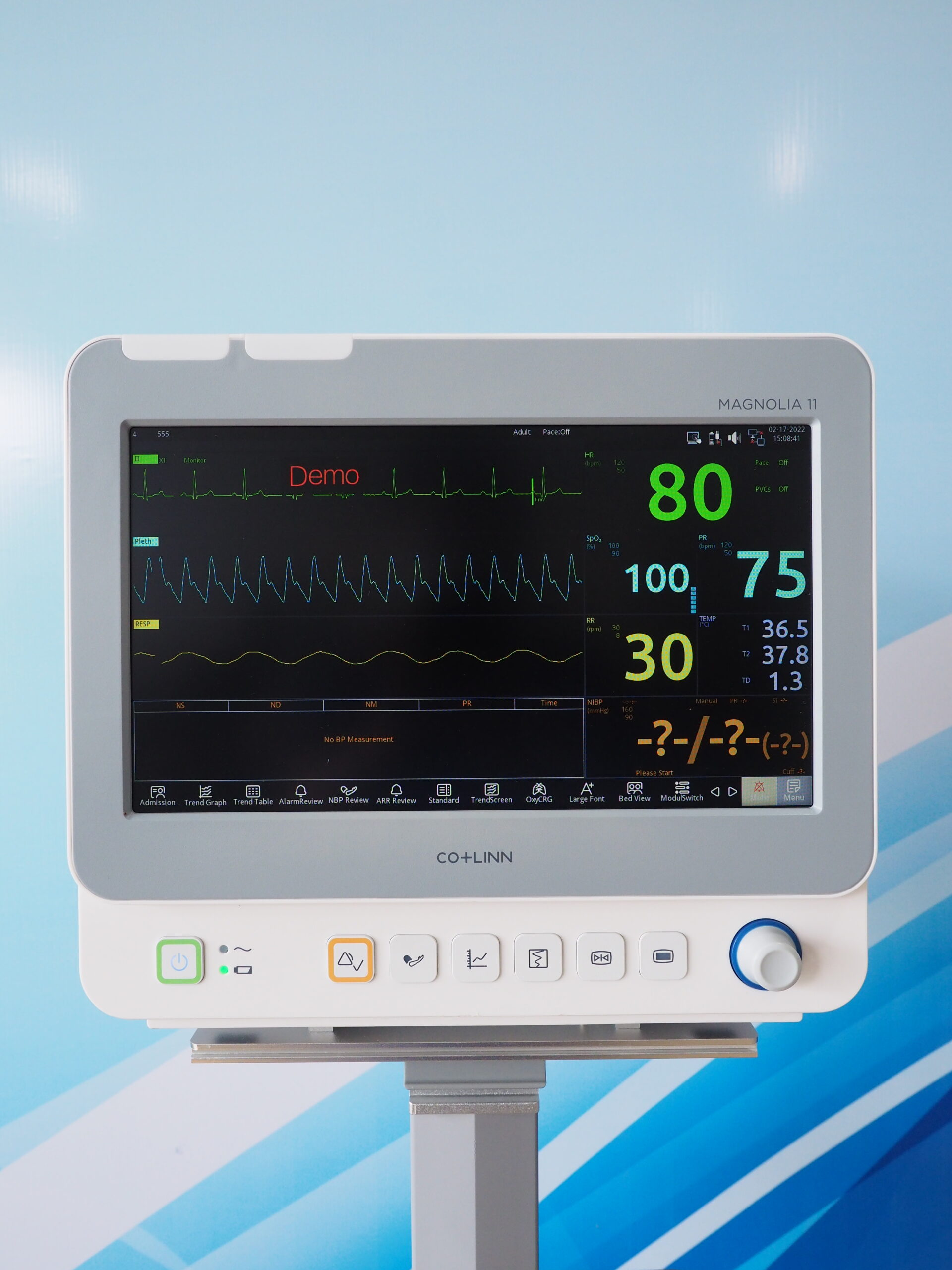 The Colinn Magnolia 11 monitors, stores, and reviews multiple physiological parameters. It also generates alarms when needed. The device supports adults, pediatrics, and neonates.